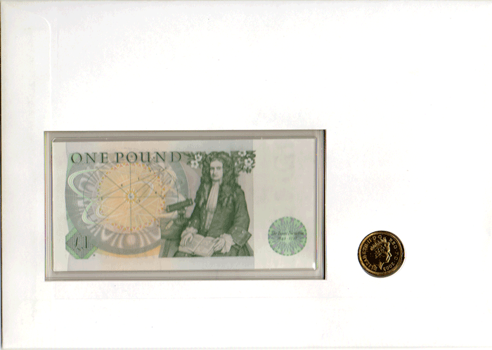 2003 £1 coin, with the last Somerset £1 banknote & the £1 stamp with special