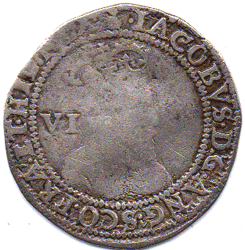 1603 James I SIXPENCE - 1st issue - 1st bust. mm. Thistle.