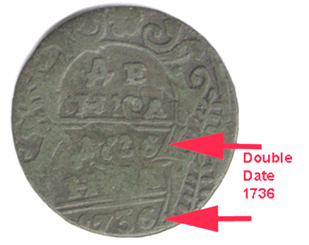 A superb example of a double struck coin with Double Eagle on the obverse & double 1736 (date) on the reverse.