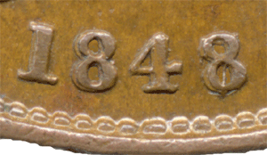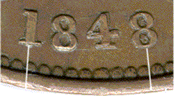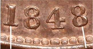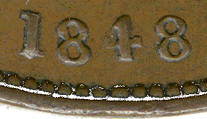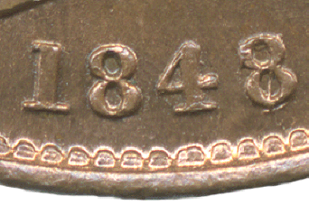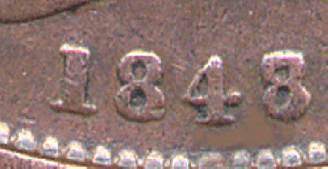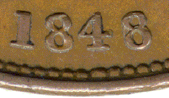 1848 penny B - 8 over 6