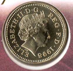 1998 £1 coin, with a J.B. Page £1 banknote & miniature sheet of early portrait definitive stamps cancellation from Westminster Abbey 10th March 1998 - 10th anniversary of the last £1 note The 1998 £1 coin is very scarce as it was never issued for general circulation. Therefore this coin as all coins provided on covers the Royal Mint provide choice specimens which are reserved for either their Mint sets or presentation packs.