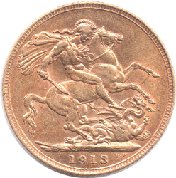 This 1913 sovereign is slightly more 'orange-gold' in colour than the normal 'yellow-gold' coin at that time.