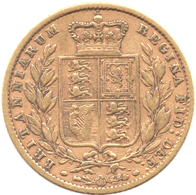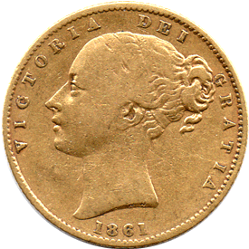 1861 Shield back sovereign Obv. C of VICTORIA over rotated C (180º),