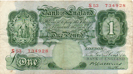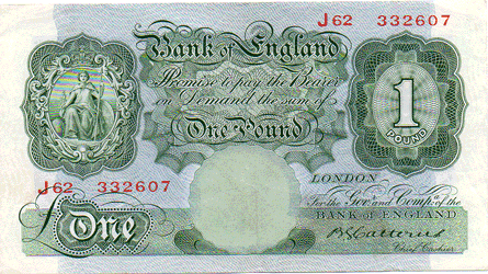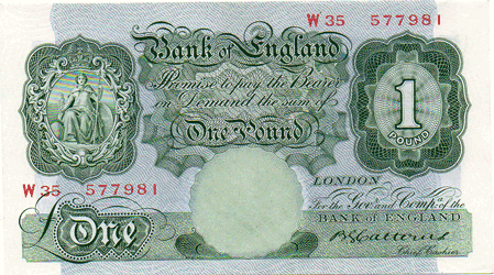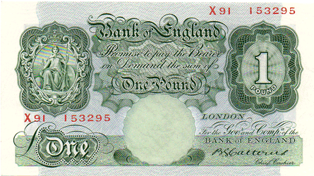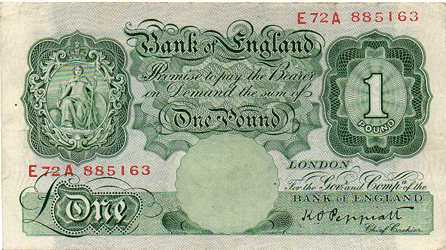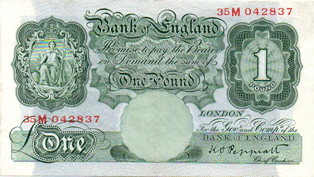 British Banknote Grades These are just some of the examples of my graded banknotes of The Bank of England period - Britannia issue - 1928 to 1960. I am only showing examples of the £1 (one) Pound banknote as the same grade would apply to the 10 Shilling banknote. ~~~~~~~~~~~~~~~~~~ I regret that I don't have a magnifier for my website but you can always see these banknotes enlarged simply by going into your "Tools" setting and under "Zoom" and increase to 150, 200 or possibly even 250% The banknote should still be fairly clear.