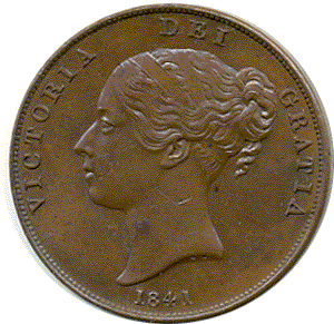 1841 Copper Penny - The 1st currency penny issue for Victoria (1839 is proof only - issued in the set). This particular variety with colon dots after REG: is very difficult to obtain and is far rarer than the catalogues suggest. I have seen between 15 to 20 examples of 1841 pennies WITHOUT colon dots after REG to every one I have seen WITH COLON DOTS. A recent collection of copper pennies, sold in auction had every rare and scarce date including 1827, 1837, 1843, 1849, 1856 & 1860 over 59, mostly in EF condition. The collection did have TWO 1841 pennies but both were without colon dots after REG !