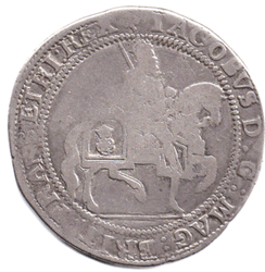 1624 James I Crown 3rd Coinage. mm. Trefoils (last year of reign) Scarcer Obv. Plain ground line. Colon stops in legend. HI for HIB E of REX double struck. Rev. Large harp. Grade: Obv. Fair to Fine. Slight wear to James's back ! Rev. Fine