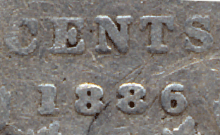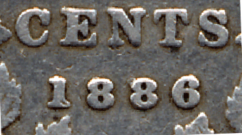 1886 10 Cents - Large pointed 6 - The top part of the 6 has a pointed end.