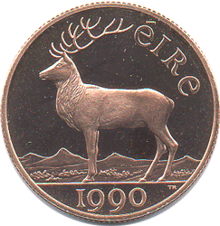 reverse a Red Deer or Stag of Ireland, EIRE above and the date 1990 below the