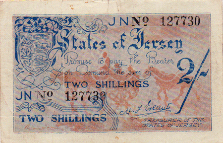 (1941) JERSEY - 2 Shillings - States of Jersey JN No. 127730 VF+/VF