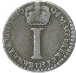 1694 Maundy 1d - Obv. GVL below bust (Struck slightly off centre)
