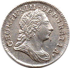 1784 Maundy 2d - Part of a lower S shows below the S of GEORGIVS - It appears as a couple of curls sticking out of the back of the head ! (A poor initial alignment when repairing the S). The middle I of III also has had a poor alignment repair. * Of the 6 examples that I have had of the 1874 Maundy 2d each coin appears to have had this poor alignment repair. Does anyone have an example without this repair ?