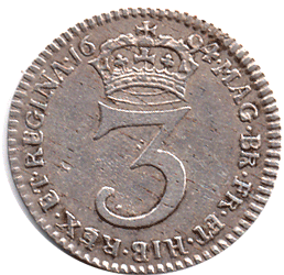 1694 Maundy Threepence - Obv. "G" below bust. A's of MARIA unbarred or inverted V's. SOLD - left as reference