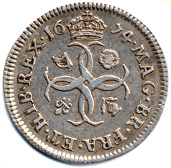 1674 Maundy 4d. 7 is over a 6 and the 4 is possibly over 3 (Top bar showing, etc !)