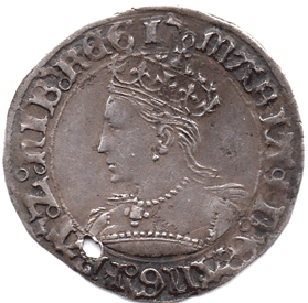 (1553 - 54) Mary Groat Mm. Pomegranate Small hole at 7 o'clock. Grade: EF? Excellent portrait. * This coin is un-creased (as many are) and if not for the small hole would probably be valued at possibly £850.00 + The hole is really only visible when held up to the light otherwise really goes un-notice ! SOLD - Left as Reference