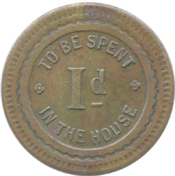 1d. [33 mm - Bronze] Rev. To be spent * 1d * in the house - Inn Token ?!