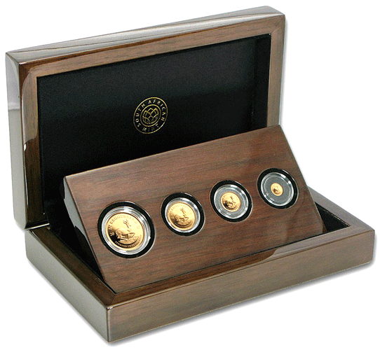 This South African Krugerrand 4 coin gold proof set was made in 2017 to commemorate 50 years of the Krugerrand. 1000 sets were issued (SOLD OUT at the time of issue - this is set is number 423. [0.420 AGW] As listed above the set contains 1/4 oz; 1/10th oz; 1/20th oz & 1/50th oz Each coin includes a special privy mark - A scarce set