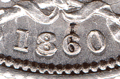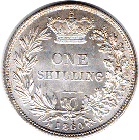 1860 Shilling - Obv. Choice golden tone around legend - head bright