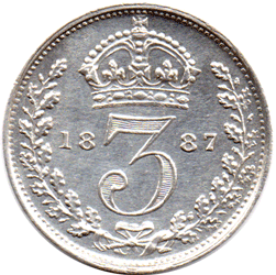 All 1887 Young head 3ds have Obv. 4 with Rev. B (Double arch Crown) All 1887 Jubilee head 3ds have Obv.5 & 6 with Rev. C (Single arch Crown)