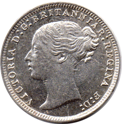The change from Obverse 3 to Obverse 4 A new obverse Silver Threepence die was made for 1880 as the previous obverse 3, used from (1866 ?) 1867 to 1879 had become worn and Victoria's portrait and hairlines had become weak and soft focus. There had been an attempt in 1879 to heavily re-engrave Victoria's hair but it looked slightly un-natural and just re-cutting of an old die. However it served a purpose as a temporary measure to see the die through to the end of the year whilst a new die was prepared. Victoria's missing nostril had not been repaired and the preparation of a new die (obverse 4) was the answer to the problem.