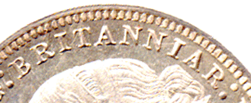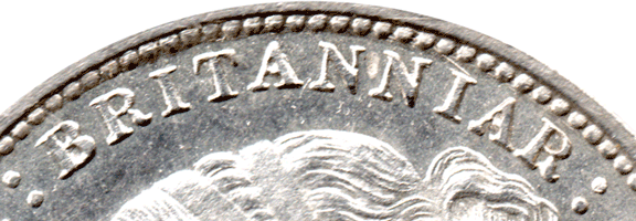 Obverse 3: Small gap between R: at end of BRIT~IAR & colon dots. Obverse 4: Larger gap between R : at end of BRIT~IAR & colon dots.