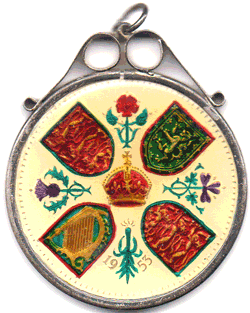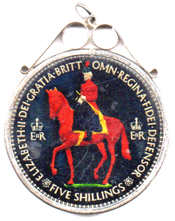 An 1953 Crown in 6 or more colours. In a pendant mount Price:...................£9.50