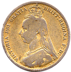 An attractive enamelled 6d (Sixpence) in 5 colours. Reverse: Outer rim area in Pale blue Legend in Royal blue Shields: 2 quarters in Red; 1 in Green & 1 in Yellow Crown in red Obverse: Victoria Jubilee head Has been gold plated. Price:...................£15.00 (GB Sixpence 3b)