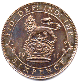 1911 P Sixpence - 2 + B PROOF Choice Deep toned pAS