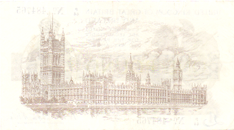 1919 Fisher - 1 Pound. Ref: T24 - 1st issue - 1st type (No.) Black numbers. Dot below o of No● P/44 N0. 484765 Mid series Grade: Obv. Choice, clean AUNC Rev.. Choice, clean - A very slight hint that the note might have been folded at some stage - only noticeable by holding it at angle in sunlight. Otherwise AUNC