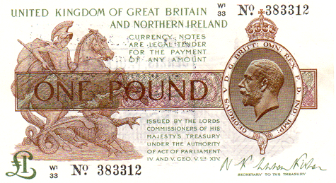 1927 Fisher - 1 Pound. Ref: T34 - 3rd issue - With "NORTHERN" IRELAND added - Black numbers. Dot below o of No● W1/33 N0. 383312 Mid series Grade: Obv. Clean. Hint of a slight right bottom corner flick. Trace of black company stamp on reverse showing through EF+-AUNC Rev. Clean Hint of a slight left bottom corner flick. Large rectangular company stamp for DENNIS, FAULKNER & ALSOP SOLICITORS 32, MARKET SQUARE NORTHAMPTON * * See - https://www.dfalaw.co.uk/about-dfa-law/history/ The law firm of Dennis, Faulkner & Alsop are still in business - see full details on their webpage. This is just a part of their history up to the time that this company stamp was attached to this note. DFA Law was formed in Northampton in 1838 by William Dennis, a Northampton man, upon being admitted as a solicitor practising from offices in Horsemarket.