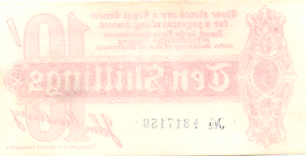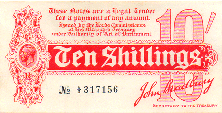 1914 Bradbury - 10 Shillings. Ref: T9 - 1st issue - 2nd type. No. A/2 317156 Obv. Clean & flat with possible light tone to paper at top Rev. Clean & flat with possible light tone to paper at top I cannot see any hint of a crease but I grade as AUNC