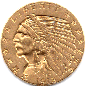 USA 1913 5 Dollars - Indian head issue - [0.2418 AGW] Grade: EF?