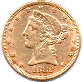 USA 1882 5 Dollars - Liberty head issue - [0.2418 AGW]