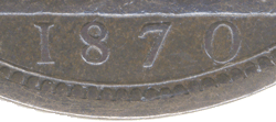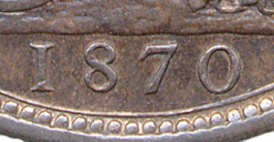 BP 1870Ad Date: (Sub type d) [12 1/2 teeth from below 1 to centre of 0] - Probable but I have not seen yet ! BP 1870Ae Date: (Sub type e) [13 teeth from below 1 to centre of 0] - Wide - Very Scarce