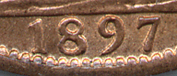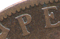 BP 1897 C - with Reverse 'x' - I find the easiest way to distinguish this variety is not by the sea as it is only fractionally higher but by the 'P' of Penny which points to a gap between two teeth where as with Reverse 'w' the 'P' of Penny points to a tooth. Rare reverse type