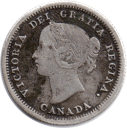 1858 Canada - 5 Cents - Small date. Dark toned or slightly claggy field.