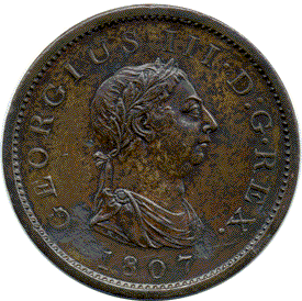 1807 Copper penny - Obv. Pitting between the 1 of date and G of GEO~ (lower back of bust)