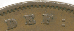 Both colon dots closer to DEF & the top colon dot also - tilts backwards: CP 1858 F (Type 1 - Smaller numerals)