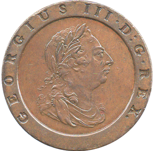 1797 Twopence - Obv. Virtually no noticeable edge bruising. Rev. Virtually no noticeable edge bruising. Very fine hairline scratch from top of olive branch to below T of BRITANNIA.. Still a nice example and scarce in higher grades. Grade: EF (Unusual that there is no real visible edge bruising) !