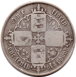 1858 B Florin - rev. ONC for ONE - Fine (So far, only 4 found on this error reverse)