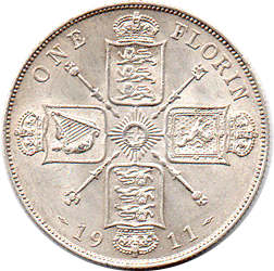 1911 Florin B - 2 + A Obv. Reasonable head strike. Rev. Choice - Bright EF/EF+