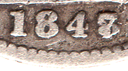 On examination of the 4 in the 1847 groat picture one can see that it is a small slimmer 4, total unlike any 4 font used for the 1846 groats (which are larger). If we examine the 4 font used in 1848 with 8 over 7 and 1848 plain date one can see that the 4 font is virtually identical in shape, style and size ! I therefore suggest that the 7 is over an 8 and not a 6 ! I suggest that what might have happened back in 1847 & 1848 is: Looking back at the mintage for 1846 - it was fairly large at 1,817,640 coins struck. The mintage for 1847 was recorded at 225,720 coins it is possible that that the entire number of Groats struck in 1847 was with 1846 (remaining) dies ! The Royal Mint was using up dies & saving money ! Dies for 1847 Groats were probably made later that year for possible use but in fact never used ! That is the reason a plain 1847 dated Groat has never been found. In 1848 as it is approaching the end of the 1840s it would be in the Royal Mint's interest to use up remaining dies that still had potential use. 1848 Groats have been found with the last 8 over 6 and the 8 over 7. That shows that there were still life in 1846 dies as it is an easier variety to find than the 1848 8 over 7 variety. It is normal protocol to call the last numeral of the date that is most pronounced to be the lead coin. In the case of the 1847 groat because the 7 is higher than the under-numeral we call this date and variety 1847 date 7 over 8. However, I suggest that this coin was struck in 1848 and not in 1847 and that the Royal Mint employee did NOT make a mistake of striking the 8 punch in the wrong place - as suggested by another coin company with this comment.