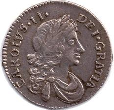 1672 Maundy 1d - Obv. Several of the letters of CAROLVS have been double struck