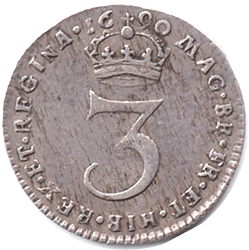 1690 3d Obv. GVL below bust. Small lettering for legend. Stop over Maria's head. Note the large gap between ET & MARIA. No stops after D or G (end of legend) Rev. Small lettering in legend. Even smaller "N" font used in REGINA ! Date: Small font used. The 1 is neither Arabic or Roman style ! Stop before 1 none after 9 This obverse / reverse type not listed in any catalogue.