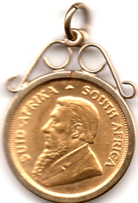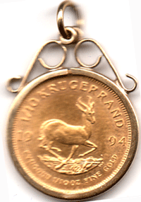 1994 South Africa 1/10th Kruger-rand [0.0100 AGW] with 9 ct gold mount (1 gram)