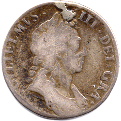 1697 Shilling 3rd bust Obv. Solder mark at top (Fair ?)