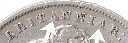 1858 Shilling - A slightly unusual coin to categories as it appears to be Davies obverse 2 - same number of border teeth. 13 border teeth between the A's of GRATIA but the I of DEI points to a tooth rather than a gap !? All the other letters line up to border teeth as per obverse 2 ! Obverse 3 & 4 have less border teeth. The 1st A of GRATIA and both A's in BRITANNIAR are unbarred or inverted V's !? A strange variety.