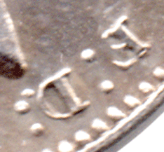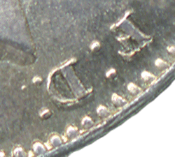 ST 1858 Ar - The colon dot, after F, closest to the truncation, is closer to the F and the colon dot close to the border teeth is further from the F. The colon dots appear to lean backwards. The opposite to that as shown on Ap. The colon dots after D: also lean backwards. *The front part of the D is now in alignment just under Victoria's truncation back whereas in the other earlier dies the front of the D is just before Victoria's back. See earlier images A to Ak. ST 1857 As - This is a bit of a mess by a repairer - there is an extra colon dot ON the front section of the D ! The colon dot nearest the border is very close to the D and the one furthest from the border is partly on the D ! *Sorry about the picture quality but it is not one of my coins it was sent to me - courtesy of BP. [Seen on an 1857 3d] ST 1857 At - The colon dots after F: are in the normal alignment. The colon dots after D: are very close to the D, the inner dot has forced a slight indent to the lower front of the D so as to make space for the colon dot. The alignment of these dots are directly to the back of Victoria's truncated neck and much closer to the truncation than the earlier examples. Further D: G: & F: D: Colon dot anomalies With Obverse 2 from 1861 to 1867