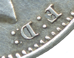ST (1838-60) Ad - The lower colon dot after D: (the one furthest from the edge) has been entered slightly below the base of the D. The colon dots after D: are in a similar alignment as per Type Ab & Ac to the back of Victoria's bust but those colon dots are now further apart than on Type Ab & Ac. The lower colon dot after D: is now closer to the back of Victoria's bust. [As seen on an 1856 3d]. ST (1838-60) Ae - 2 colon dots after F: & 3 colon dots after D.: of F: D: After the D there is small dot just before the colon dots (lower & before) [As seen on an 1838 3d].