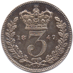ST 1847 Af - Obv.1 (F: D: type - Af) Rev. Left tie ribbon and wreath stalk fully struck * Date: All numerals - Large. The 8 is over an 8 (slightly to the left) Grade: Choice Slightly prooflike field pAS Deep tone * I have only ever had four examples of this extremely rare date and as I did not take much notice, previously, I cannot determine how many had full or part left tie ribbon & wreath stalk. See 1846 part left ribbon & wreath stalk. At least two other 1847, that I have the scan of had full left ribbon, etc. At present I have three examples in stock and this example has the normal (FULL) tie ribbon at the left side and full length wreath stalk. I feel that this coin is possibly - ex-Maundy ! Maundy mintage: 4,488 Whether it is Ex-Maundy or currency it is still extremely rare and highly collectable !