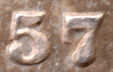 ST 1857 Db - Obv.1 (With normal "C" & full Roman "I") As per normal die since 1838. (F: D: Type - Ab) The O of VICTORIA is open at the top The 2nd I of VICTORIA is double struck (slightly sideways and looks very slightly light a condensed X ! Date: 1 over 1 & slightly larger 5. See 1857 date style fonts. Grade: Choice golden tone 'Prooflike' pAS